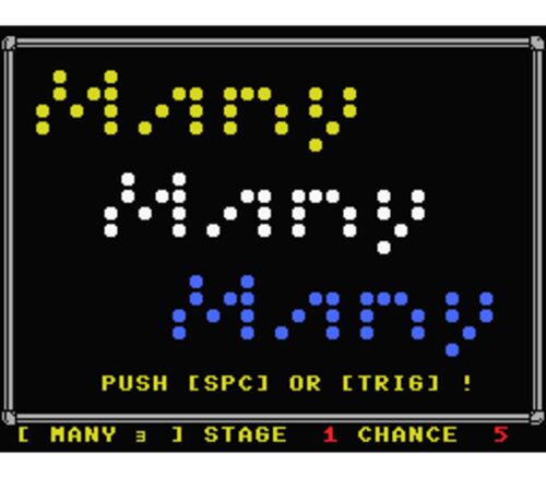 今回はMSXのメニー・メニー・メニーです。 雑誌MSX・FANに投稿されたブロック崩しゲームです。 このブログで何度も登場している米屋のチャチャチャさん作成ですので、面白く無い訳が無いんです。 余り長くないプログラムで見た目も面白さも良いゲームを量産し…